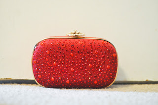 The Red Cocktail Purse. I found this sparkly clutch while on a purse shopping trip with my dad. We were going through rows and rows of bags that we would donate to various auctions. Don't ever underestimate the pieces you may find in a wholesale store! I use this bag when I'm trying to down play the sparkles due to a semi-formal event. The most recent excursion with this purse was to a Valentine's Day party. I paired it with a black top and white pants.